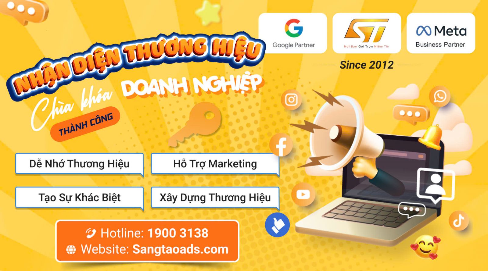 Sangtaoads tự hào là đối tác của Google tại thị trường Việt Nam từ năm 2013. Với phương châm mang khách hàng đến với doanh nghiệp, chi phí thấp hiệu quả bất ngờ, đội ngũ nhân viên có nhiều năm kinh nghiệm trong lĩnh vực quảng cáo trực tuyến chúng tôi đang hỗ trợ khách hàng với giải pháp quảng cáo trực tuyến như quảng cáo Google, thiết kế Website, quảng cáo Youtube, quảng cáo Banner tiếp thị lại...